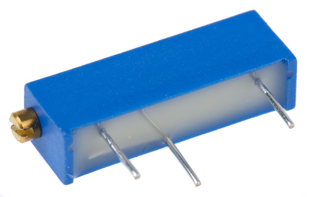 Bourns Standard 3006P Series 19mm ( in.) rectangular end adjust cermet trimmer with a power rating @ 70°C of 750mW. The 3006P series cermet trimmer’s wiper idles at the end of its travel and is sealed to withstand immersion board washing.