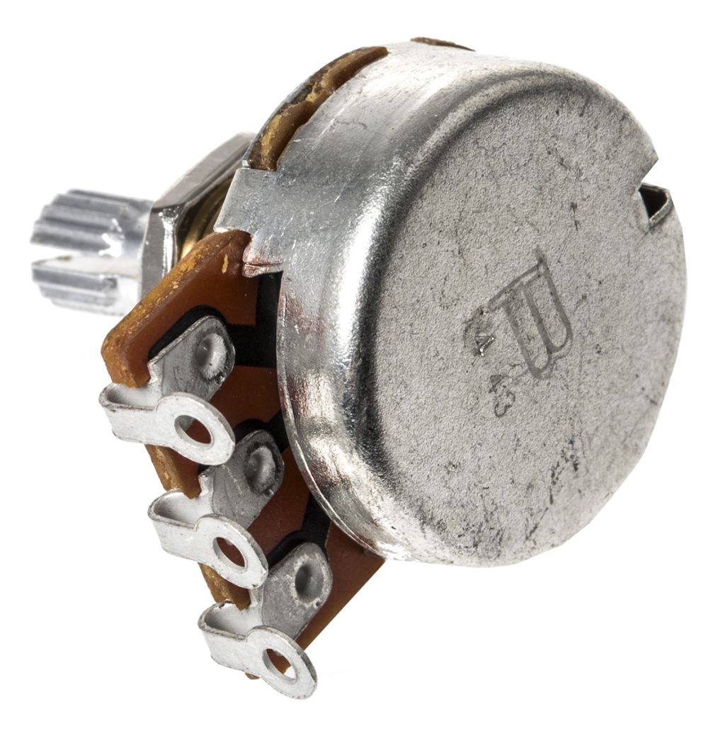 Bourns PDB241-GTR series standard drop-in replacement "guitar pots" with a knurled or solid shaft. The PDB241-GTR series potentiometers are available in a variety of resistance values and either Audio or Linear taper options.