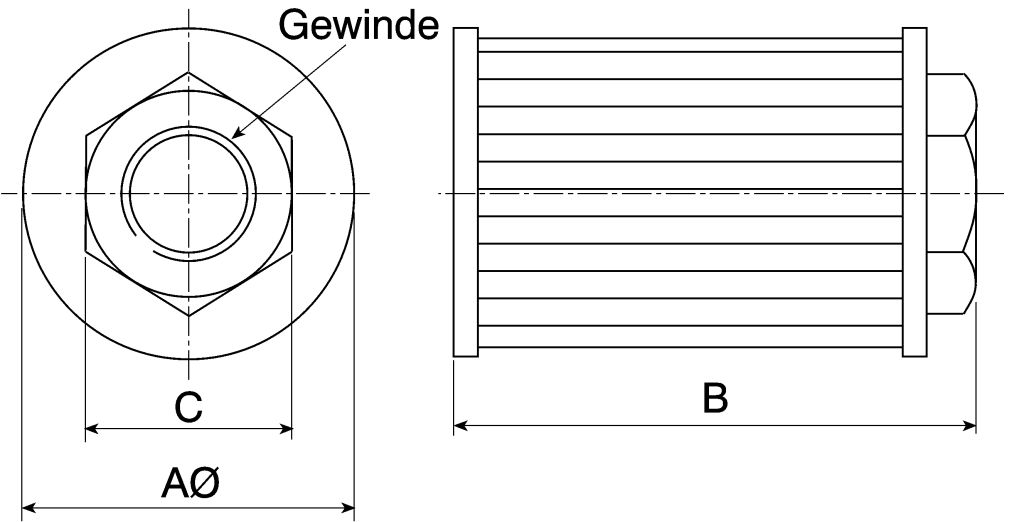 One piece suction strainer for use in hydraulic reservoirs and tanks. These elements can be installed directly onto the pump suction line and should always be below the minimum fluid level of the tank. The end caps, inner support cylinder and filter media are epoxy bonded to form a one piece contrsuction.