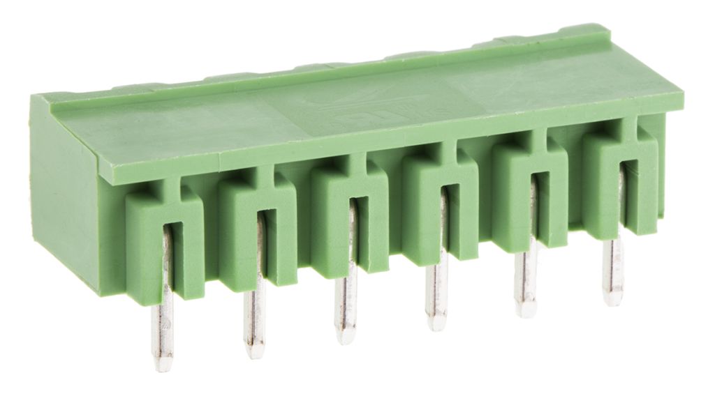| Product description | RS PRO, 6 Way, 1 Row, Right Angle PCB Terminal Block Header |