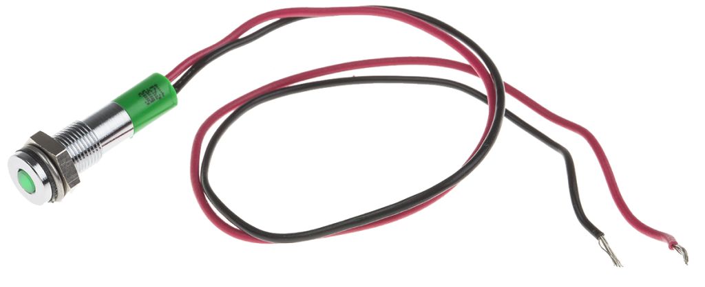 | Product description | RS PRO Green Indicator, 12V dc, 6mm Mounting Hole Size, Lead Wires Termination, IP67 |