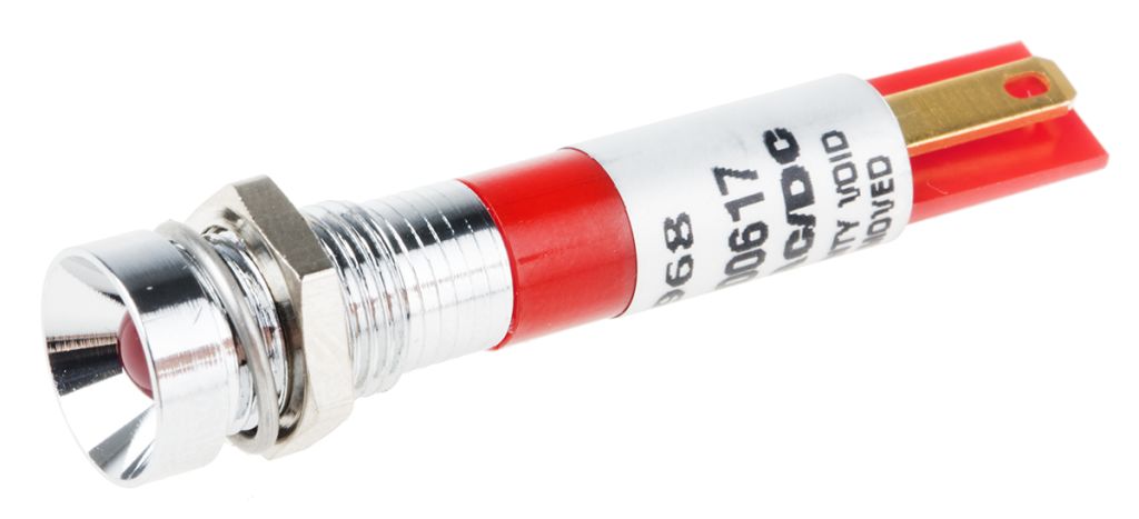 | Product description | RS PRO Red Indicator, 24V ac, 8mm Mounting Hole Size, Solder Tab Termination |