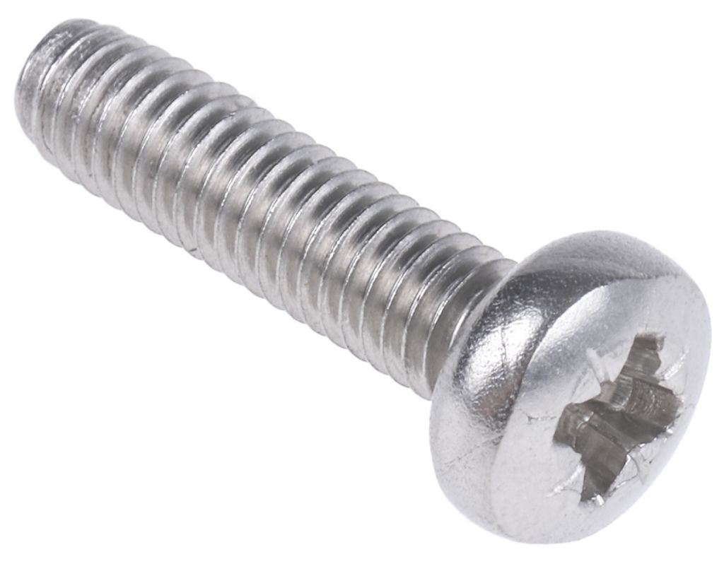 From RS PRO a high-quality pan head machine screw with a versatile Pozidriv recess for a superior grip when tightening. This machine screw has a metric thread and is made from high-quality A2 stainless steel which has strong abrasion resistance and excellent resistance to corrosion.