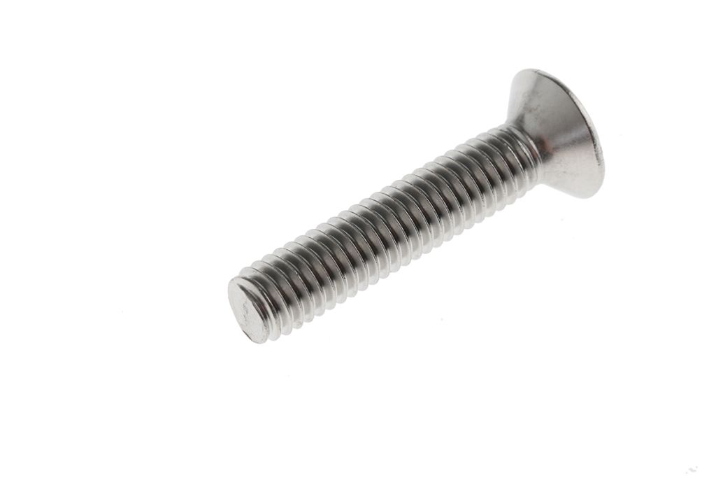 Countersunk machine screws, also known as CSK screws have a flat head design so when placed in a pre-drilled countersunk hole they will sit flush with or below the surface of the surrounding material. These screw heads are ideal for use when you need to cover the heads with a screw cap or create a flat surface for placing objects on or fixing other objects to.