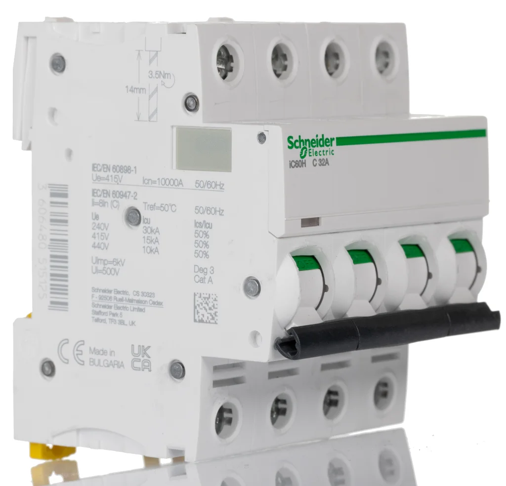 | Product description | Schneider Electric Acti 9 32A MCB Mini Circuit Breaker, 4P Curve C, Breaking Capacity 10 kA, DIN Rail, 440V |