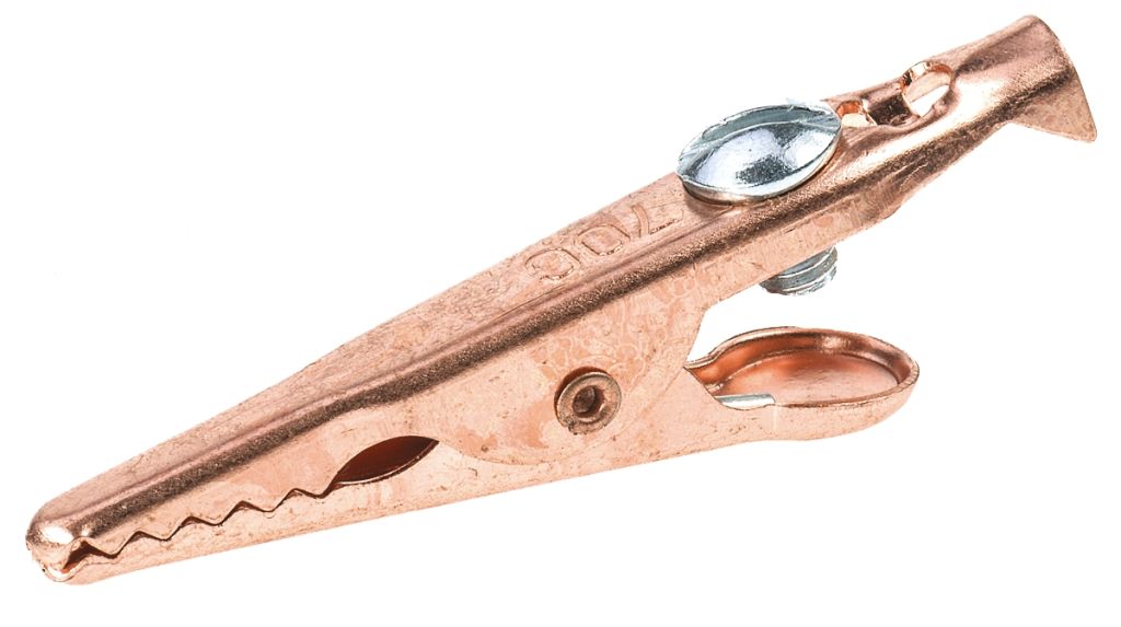 A concise offering of steel and copper alligator and crocodile clips from Mueller suitable for applications including grounding clips, test meters clips, battery terminal connection and many others that require a durable and hardwearing alligator or crocodile clip.