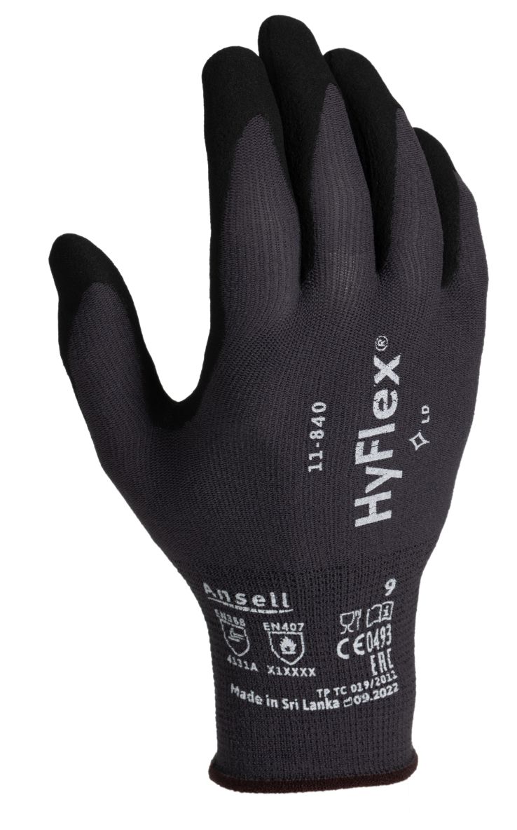 | Product description | Ansell HyFlex 11-840, HyFlex 11-840 Black Nitrile Coated Nylon Work Gloves, Size 9, Large, 2 Gloves |
