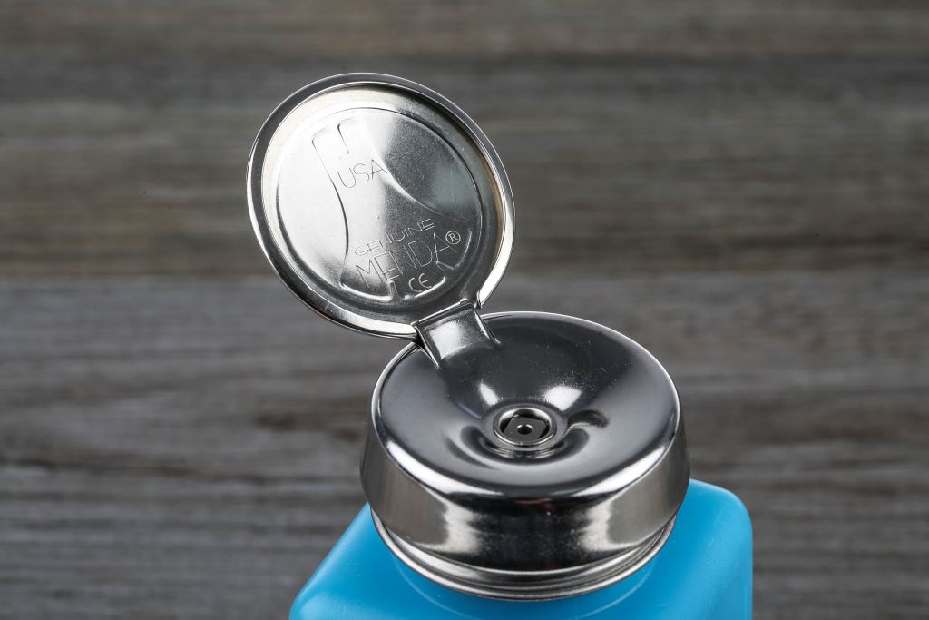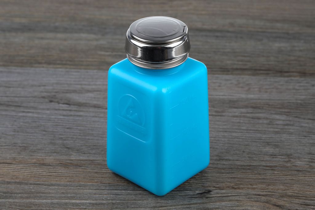 Embossed with the ESD protective symbol, these one-touch pumps are available in three container sizes: 4 oz, 6 oz and 8 oz. Each pump dispenses approximately 2 ml of liquid.