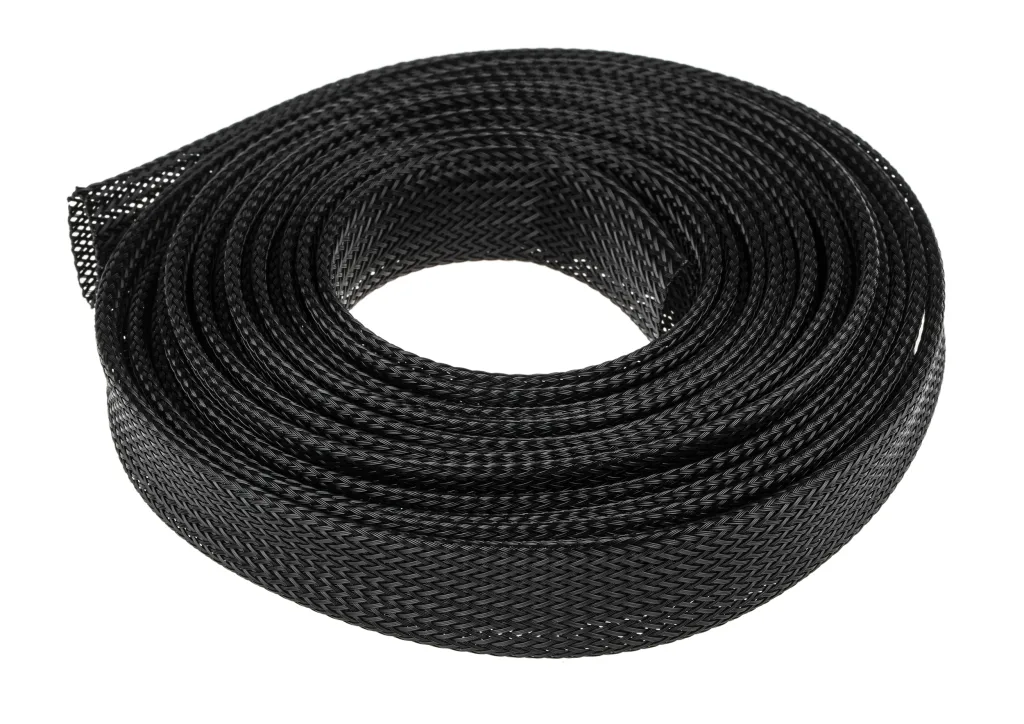 Expandable braided cable sleeving is lightweight and flexible and provides a protective covering for electrical wires, cables, and hoses. This expandable construction of this braided sleeve also makes it ideal for use as a cable management sleeve for bundling cables together and wire harnessing. This braided PET sleeving is used in a wide range of applications in automotive, electronic, computer, industrial and marine industries and can also be used around the home and office for keeping your computer, TV, and home entertainment cables tidy.