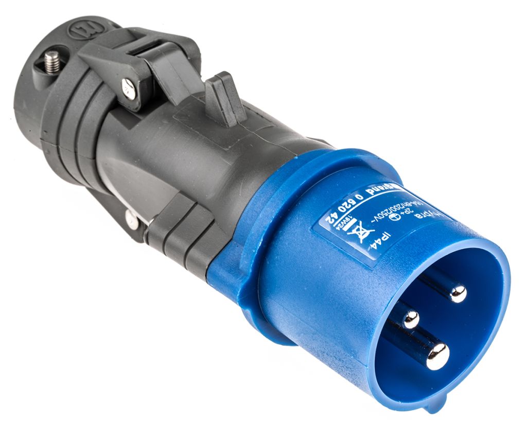 The CEE connectors feature industry standard colour-coding, with its blue hue indicating its suitability for medium voltage applications.