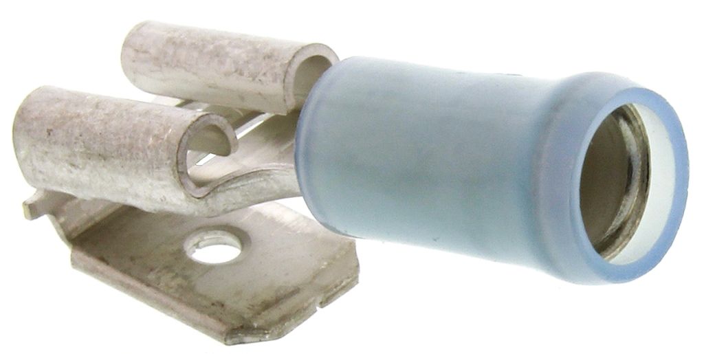| Product description | TE Connectivity PIDG FASTON .250 Blue Insulated Female Spade Connector, Piggyback Terminal, 6.35 x 0.81mm Tab Size, |