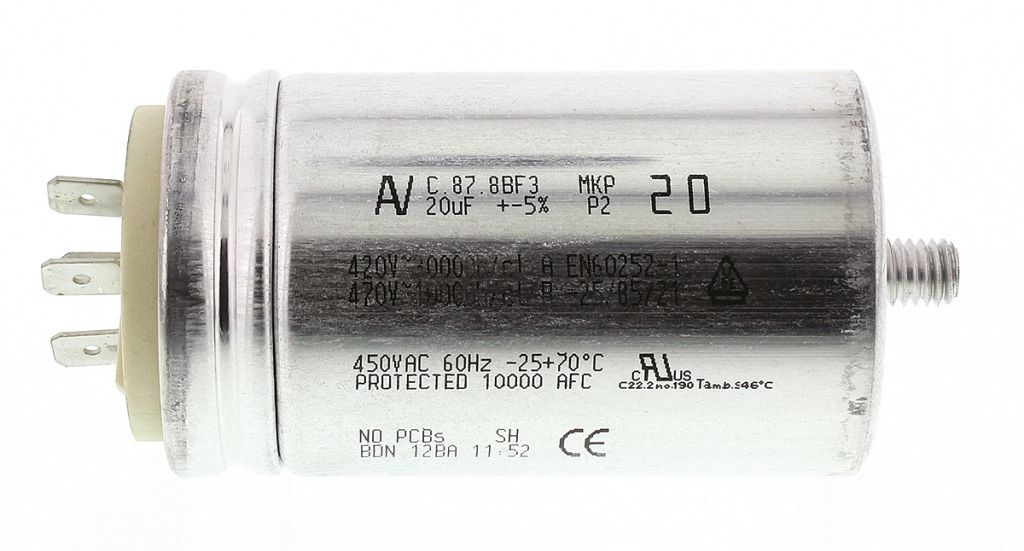 | Product description | KEMET 20μF Polypropylene Capacitor PP 500V ac ±5% Tolerance Chassis Mount C87 Series |