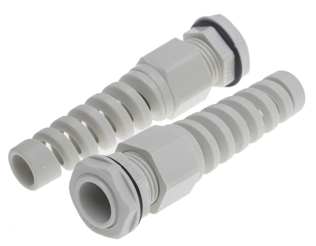 These RS PRO spiral cable glands are an ideal way to support and protect cable connections. They provide strain relief for moving, flexible cables preventing them from breaking and ensuring the cables reliability and stability.