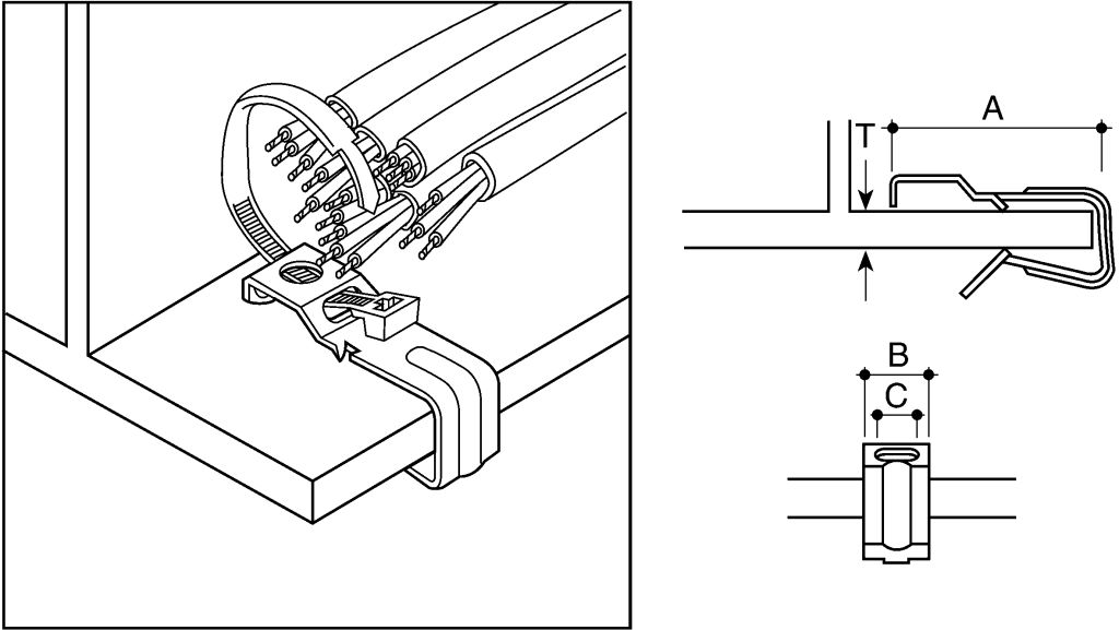 • 203-7650 is a vertical clip-on cable tie base, 10 to 18 mm