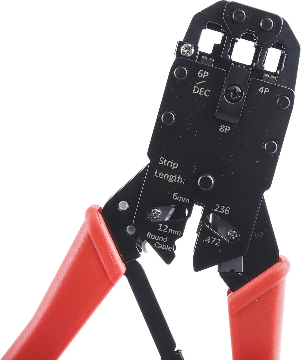C.K. Ratchet Crimping Pliers have been designed with professionals in mind for the safe and secure crimping of RJ9, RJ11, RJ 11 DEC, RJ12 and RJ45 modular plugs. Heavy-duty frame and jaws made from hardened steel, offer a long life and hassle-free operation. Handles guarantee an anti-slip, safe and comfortable grip.