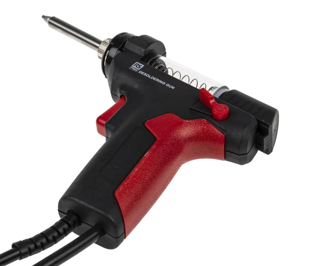 This RS PRO desoldering station is ideal for repair, prototyping and production, and any application where a circuit board component might have to be removed or adjusted. The de-soldering gun features a built-in vacuum which makes it perfect for use with through-hole components, while the high power air pump is suitable for de-soldering multilayer boards.