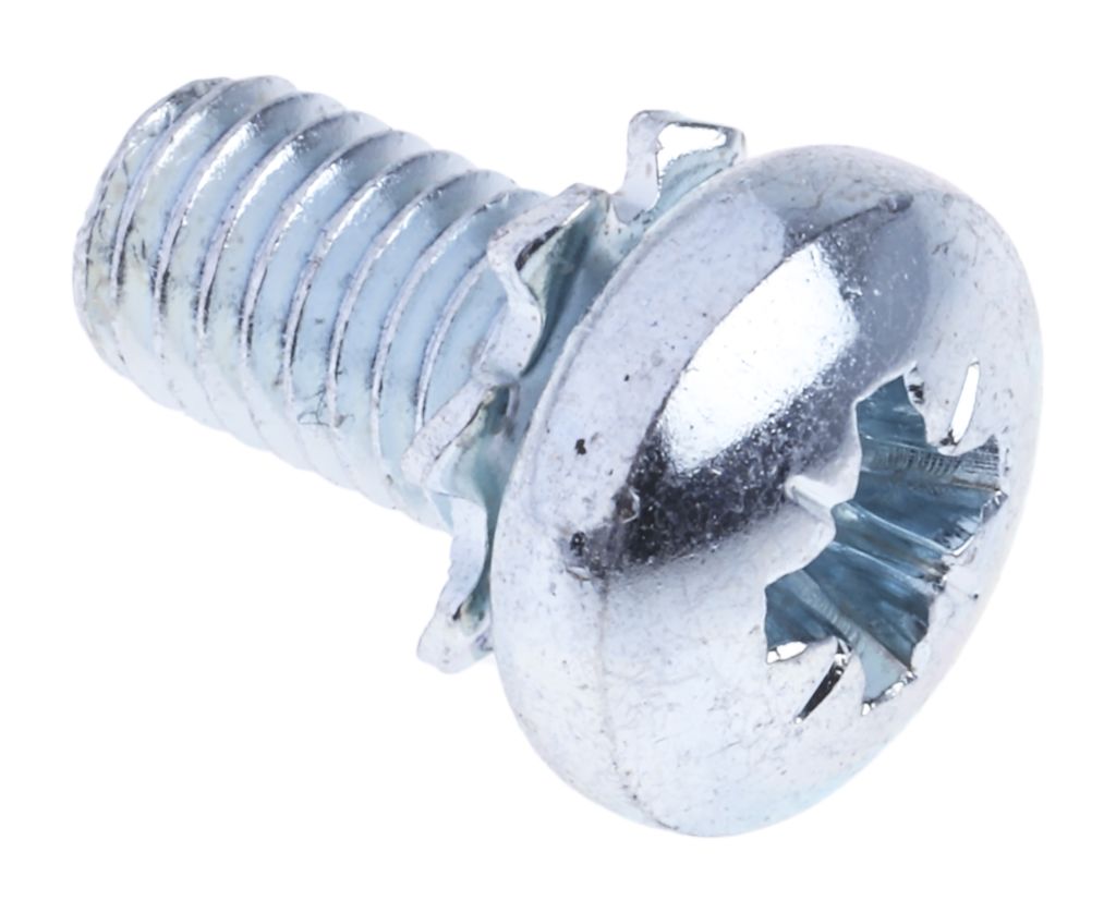Product description RS PRO M5 x 10mm Zinc Plated Steel Pan Head Sems Screw, External Tooth Washer