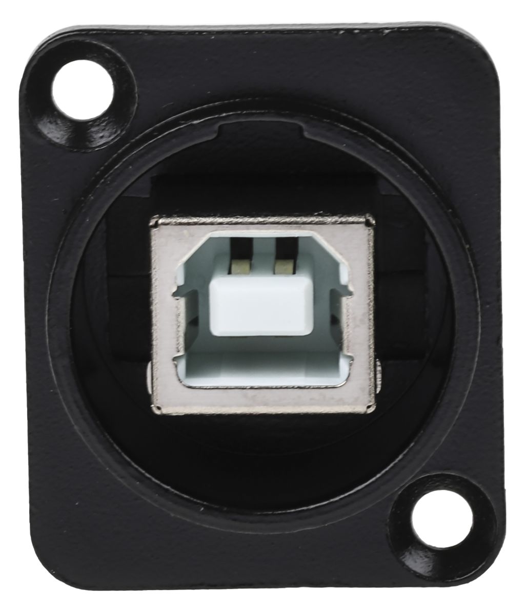 A range of RS Pro USB gender changer sockets in rugged XLR housings. The USB connectors convert from USB 2 A to B or USB 2 B to A. Designed to accommodate USB2 data feeds into professional broadcasting, audio and lighting applications. Housings are constructed from nickel plated zinc and are available in self-coloured or black options. Suitable for front or rear panel mounting.