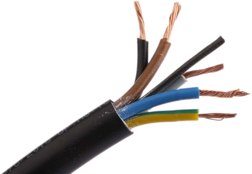 This flexible electrical power cable consists of cores made up of fine stranded copper conductors or wires. Each individual core is surrounded by colour coded PVC (Polyvinyl Chloride) insulation for easy identification of the wires. All the cores are then surrounded by a final outer layer of PVC called a sheath or jacket.