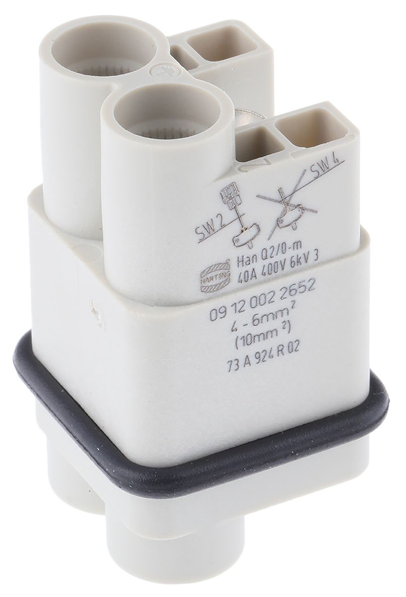 Han Q size 3 A Cable Mount Connector Housing, Male, 2 Way, 40A, 830 V