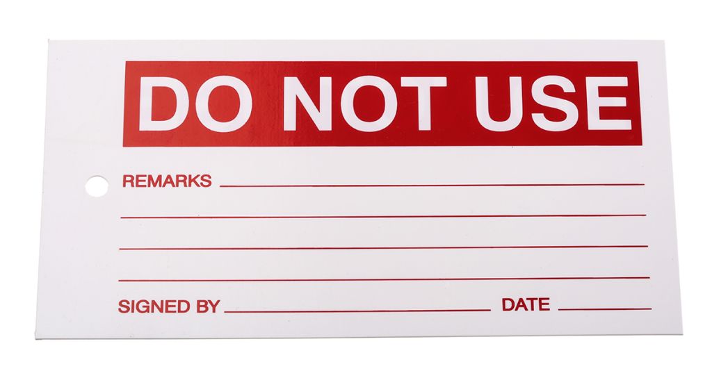 This tag is a useful tool that helps to reduce the risk of errors in the workplace by providing clear instructions at the problem source.