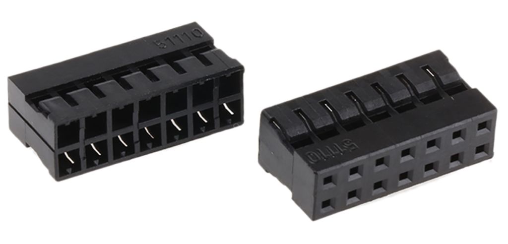 51110 series dual row Milli-Grid high density receptacle crimp housings with a 2.00 x 2.00 mm grid pattern for design flexibility. The shrouded design of these 2.00 mm Milli-Grid crimp housings protects the contacts from damage. These Milli-Grid connector housings are available with a centre polarization key that engages with a centre polarisation slot on the mating header to prevent mismating. Versions of these crimp housings are also available with a centre locking ramp and/or side latches for a secure mating connection to the header