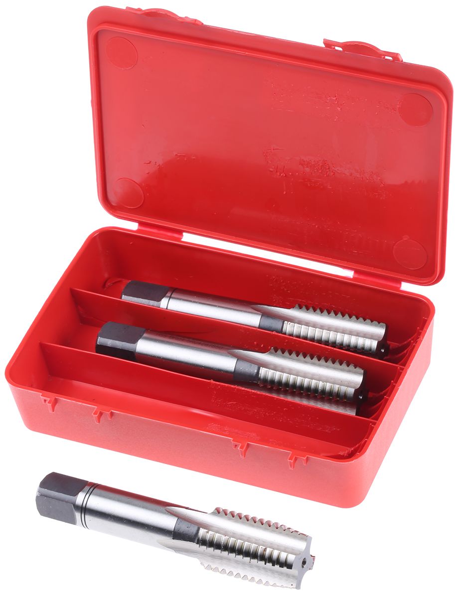 A set of metric pitch HSS hand tap bits offered in a 3 part set (taper, intermediate and finishing tap bits).