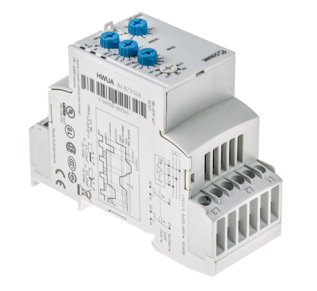| Product description | Crouzet Phase, Voltage Monitoring Relay With DPDT Contacts, 3 Phase, Overvoltage, Undervoltage |