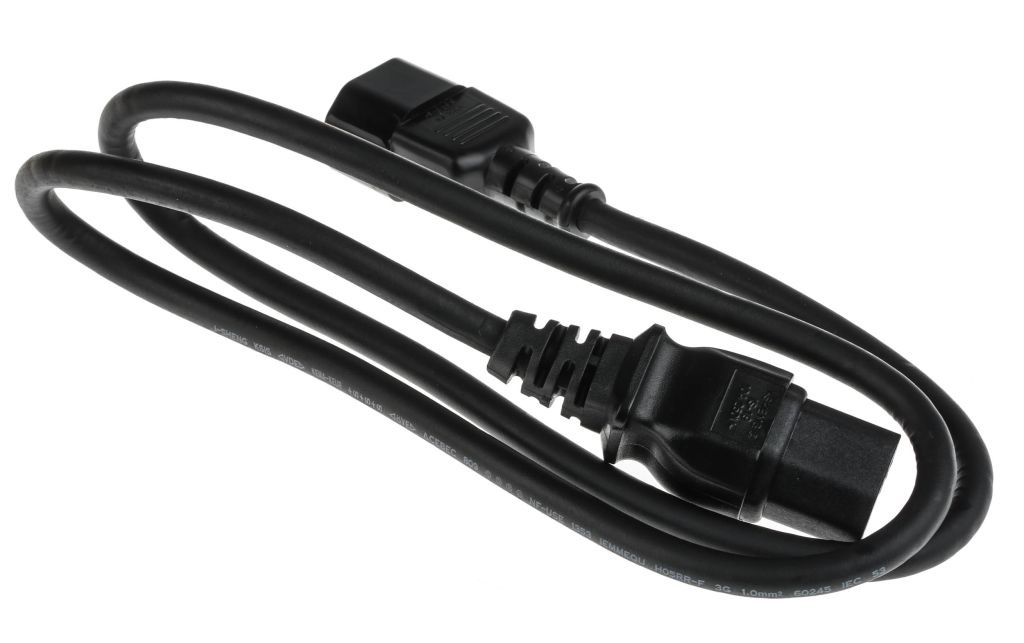From RS Pro a high quality and durable power cable assembly or power extension cord for connecting a computer to a monitor or printer or extending an existing power lead. This extension cord is fully equipped with an IEC C14 plug on one end and an IEC C15 socket on the other. The cable features integrated strain reliefs that provide additional protection and support to the connectors and protects them against damage from excessive bending.