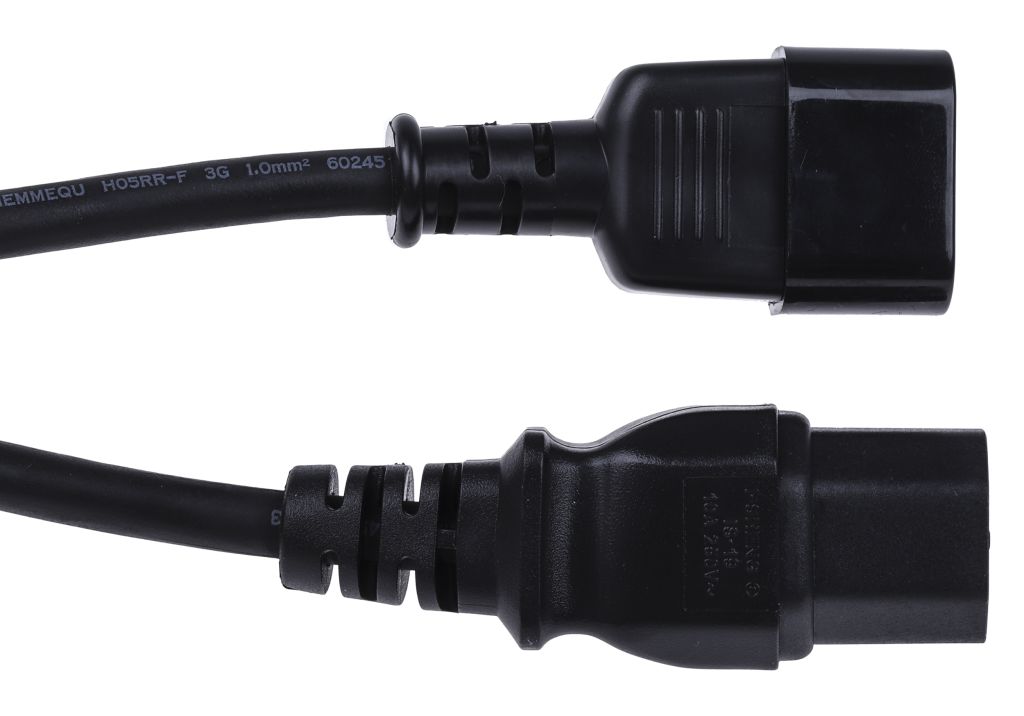 These C14 to C15 cables are for use with IEC Class I appliances and are used in computer equipment for interconnecting and powering PCs and peripherals such as monitors and printers. They can also be used for extending an existing power connection. The configuration of this cable enables equipment with a C16 socket such as servers and rack-mount switches to be connected to a UPS (Uninterruptible Power Supply) or a PDU (Power Distribution Unit) that have C13 outputs
