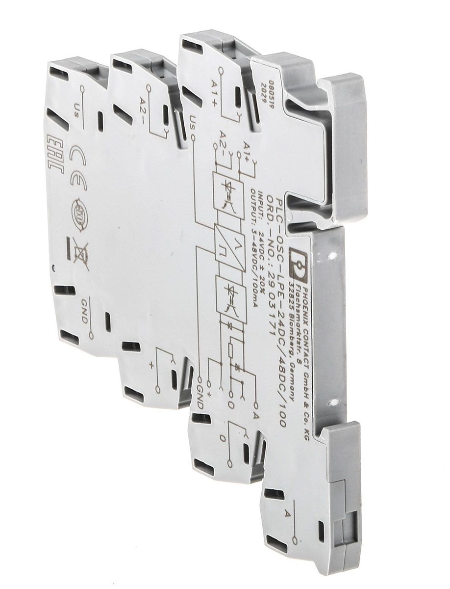 | Product description | Phoenix Contact Interface Relay Module DIN Rail Mount, PLC-OSC-LPE-24DC/48DC/100 |