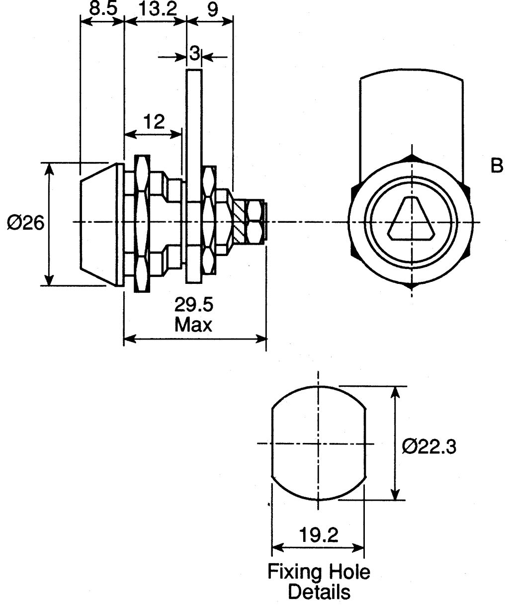 Euro-Locks a Lowe & Fletcher group Company Panel to Tongue Depth 12mm Camlock, Key to unlock