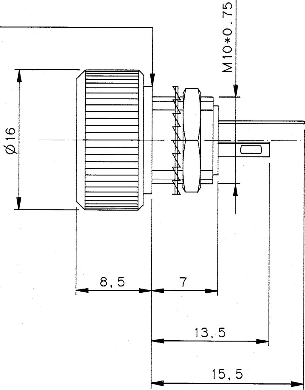 The P16 is a revolutionary concept in panel mounted potentiometers. This unique design consists of a knob driving and incorporating a cermet potentiometer. Only the mounting hardware and terminals are situated on the back side of the panel reducing to a minimum the required clearance.