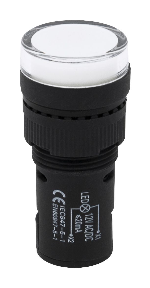 Product description RS PRO, Panel Mount White LED Pilot Light, 16mm Cutout, IP40, Round, 12 V ac/dc