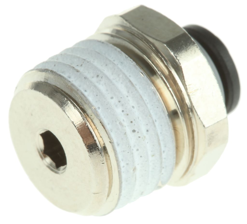 The 3175 fittings allow plastic pneumatic tubing to be connected to threaded ports. They can be tightened with a socket wrench or adjusted using an Allen key internally.