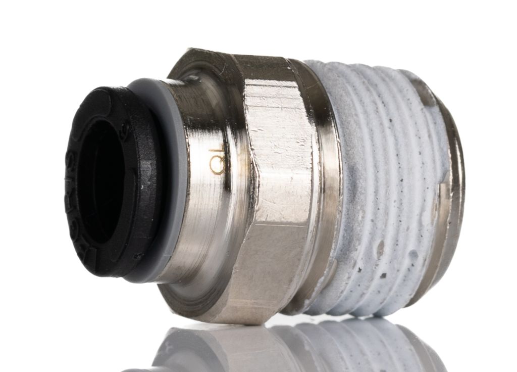The 3175 fittings allow plastic pneumatic tubing to be connected to threaded ports. They can be tightened with a socket wrench or adjusted using an Allen key internally.
