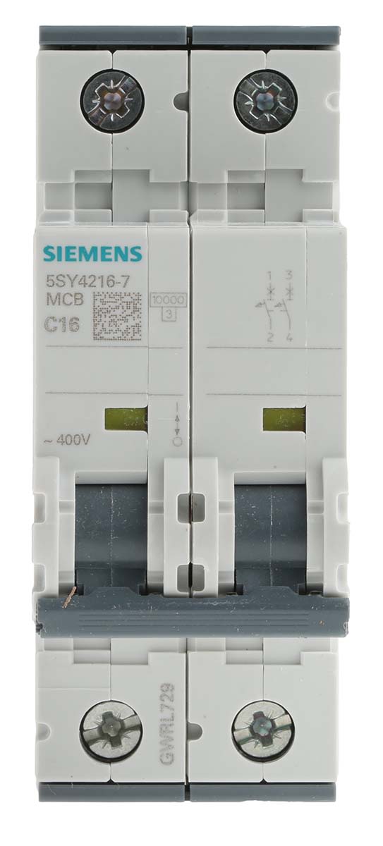 Siemens Sentron 16A MCB Mini Circuit Breaker, 2P Curve C, Breaking Capacity 10 kA, 400V