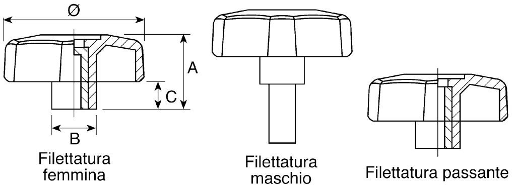 Scallop-shaped handwheels provide an easily-gripped shape, with a varying number of lobes depending on the grip and pressure required. The knobs are fitted with either a protruding screw (male), a threaded insert (female) or through threads depending on the requirements of the application.