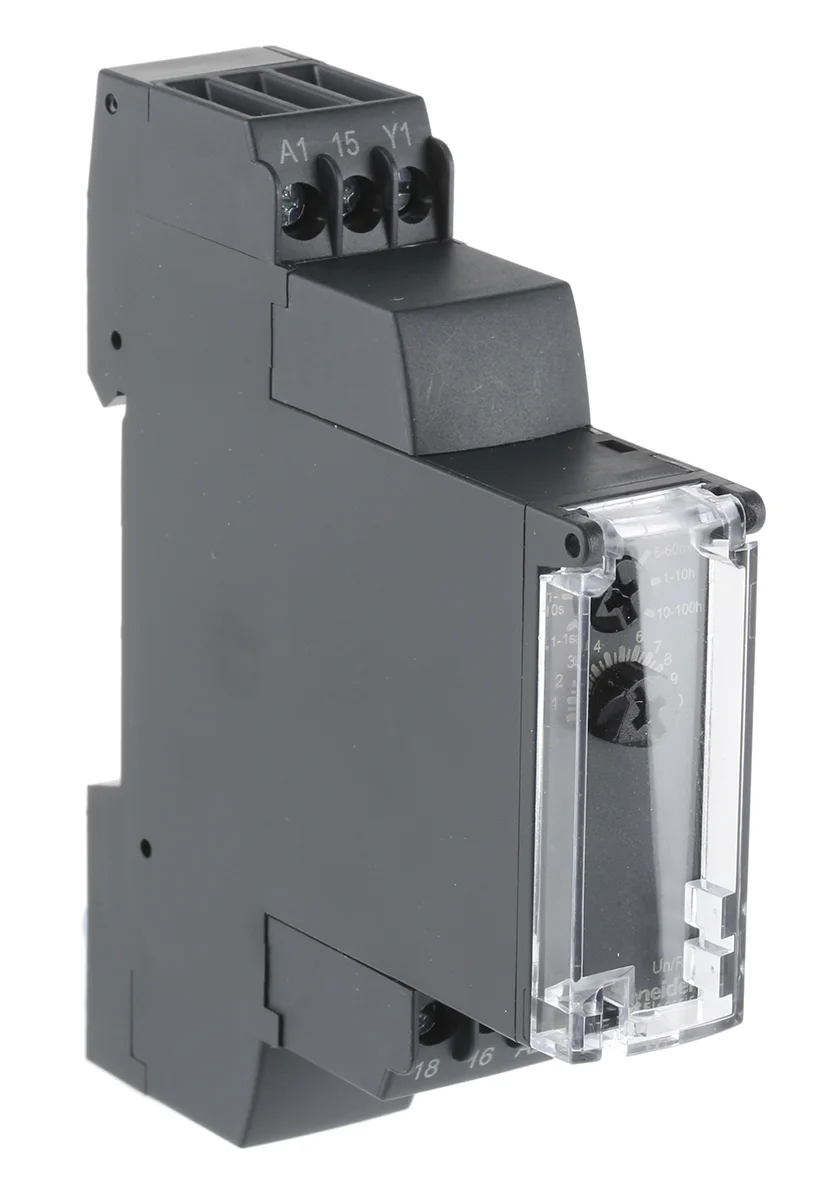 | Product description | Schneider Electric SPDT Timer Relay, OFF Delay, 24 V dc, 24 → 240V ac 0.1 s → 100h, DIN Rail Mount |