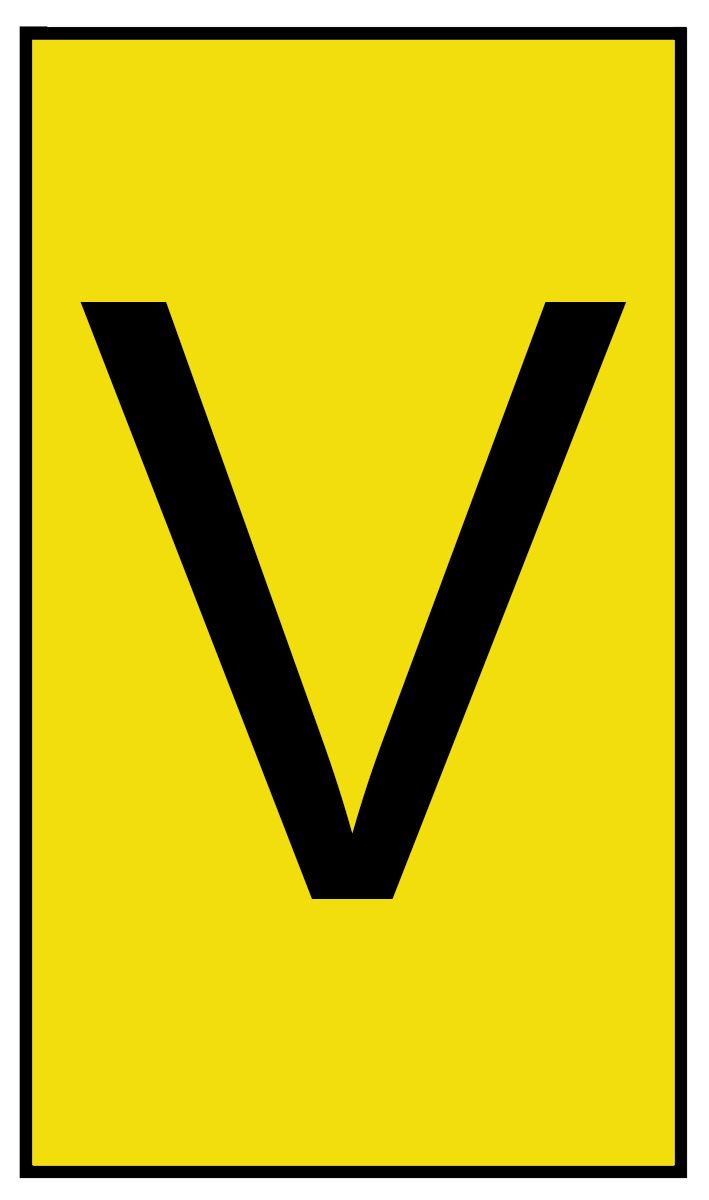 HellermannTyton Ovalgrip Slide On Cable Markers, Pre-printed “V”, Black on Yellow, 2.5 → 6mm Dia. Range
