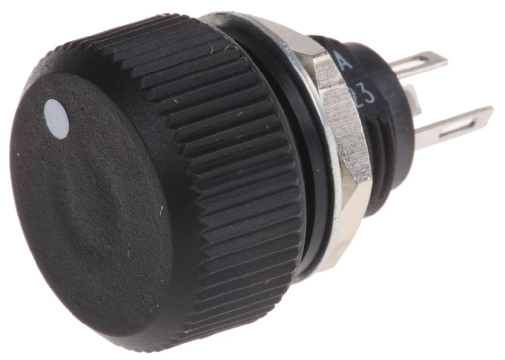The P16 is a revolutionary concept in panel mounted potentiometers. This unique design consists of a knob driving and incorporating a cermet potentiometer. Only the mounting hardware and terminals are situated on the back side of the panel reducing to a minimum the required clearance.