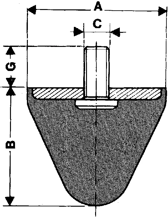 These buffers comprise a plate and welded straight stud bonded to a cone of natural rubber