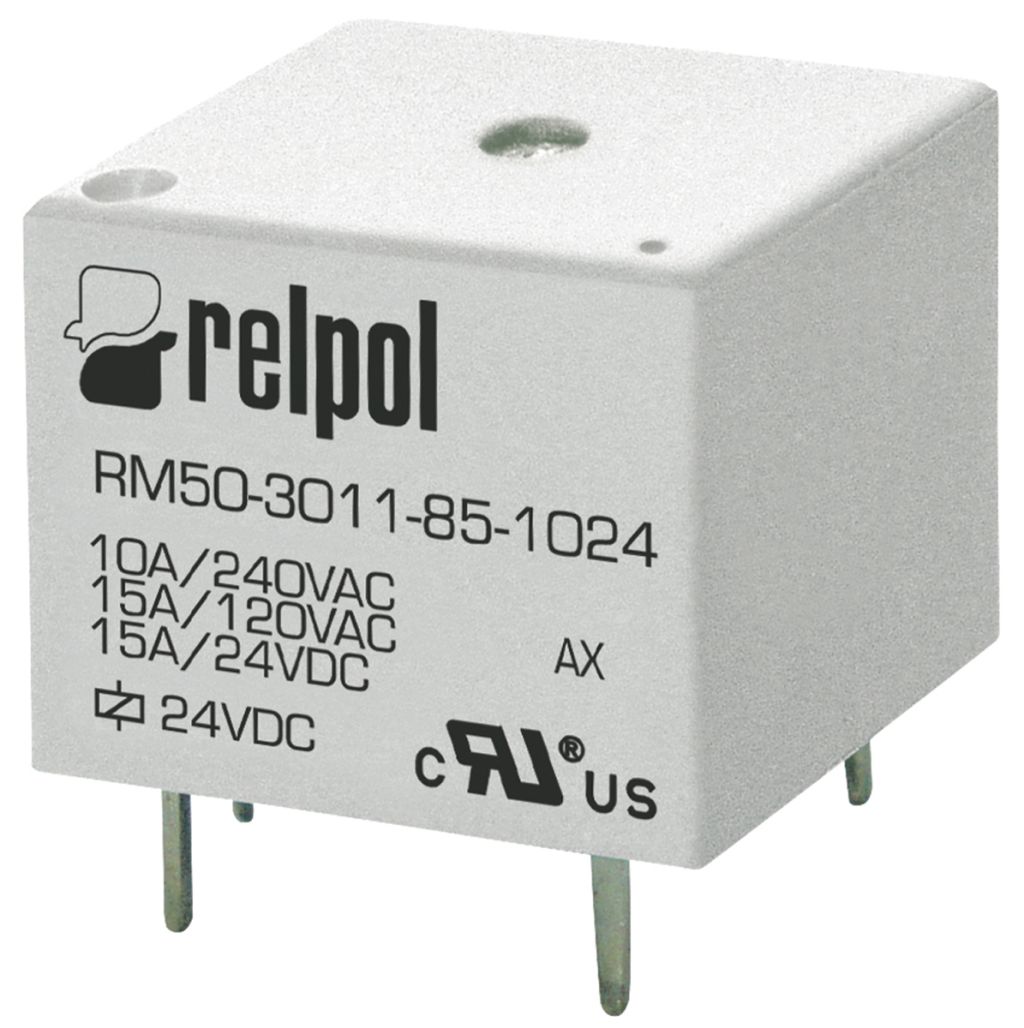 Relpol RM50 series miniature relays for general purpose applications. The RM50 relays are designed for PCB mounting and are suitable for a wide range of applications such as automobile, machine and electronic equipment.