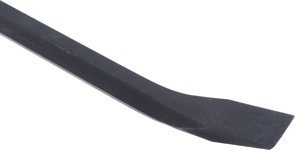 Heavy-duty pry bar with rounded, pointed end and a shallow end for prying and lifting. Hardened Chrome Vanadium Steel construction with hex shank.