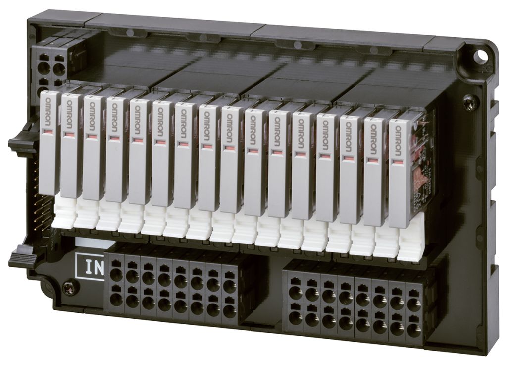 I/O Relay terminals with 16 points and push in terminal blocks are used to downsize control panels and save labour. The push in terminal blocks save wiring work in comparison to traditional screw terminals. Work is reduced even further with one-step cable connection to the PLC.