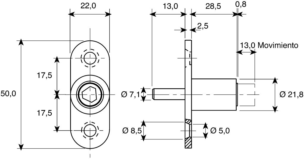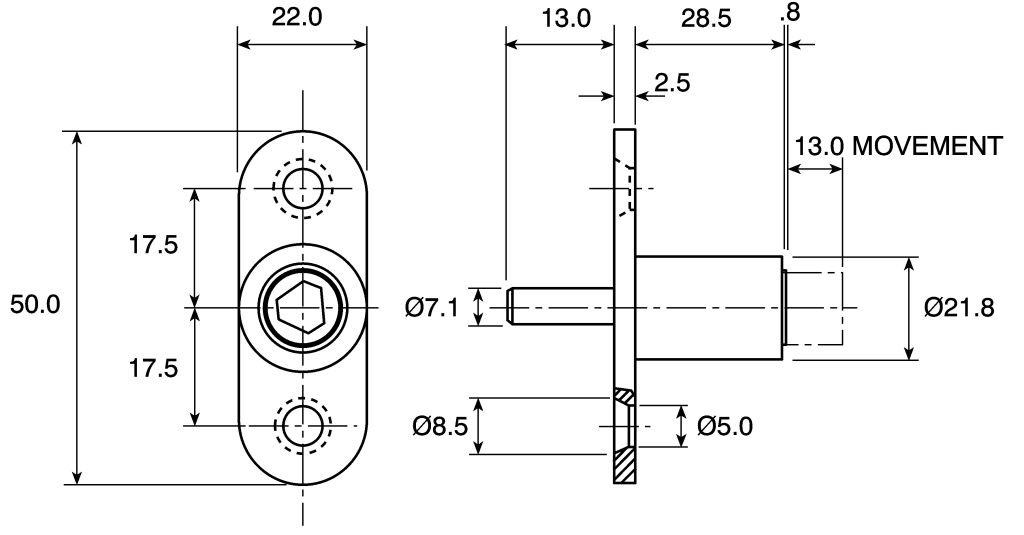 Euro-Locks a Lowe & Fletcher group Company Panel to Tongue Depth 28.5mm Plunger Lock, Key to unlock