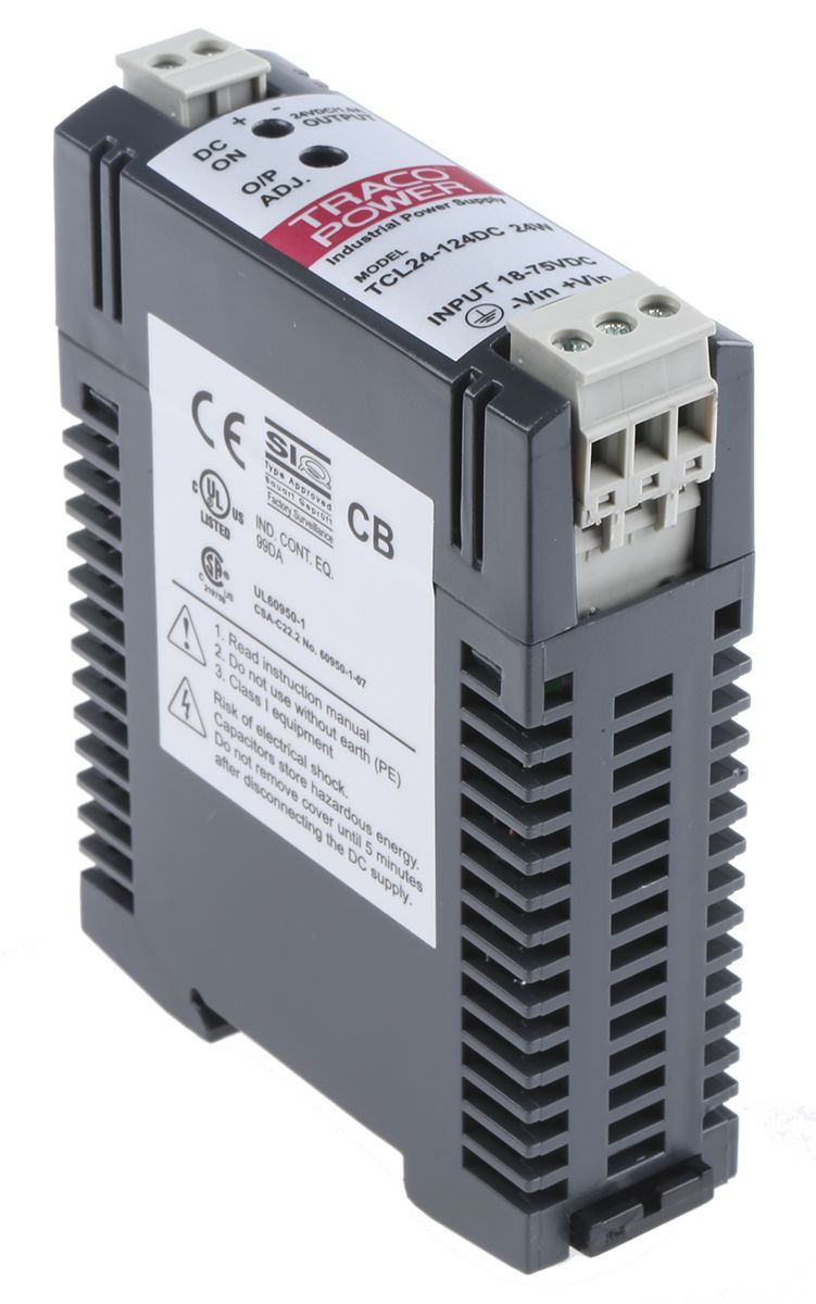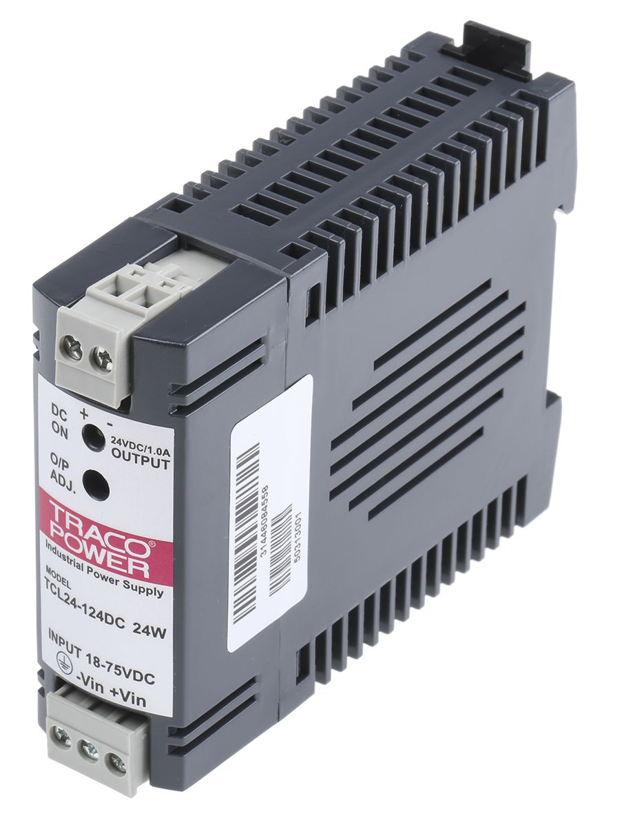 TRACOPOWER TCL Switch Mode DIN Rail Power Supply 18 → 75V dc Input, 24V dc Output, 1A 24W