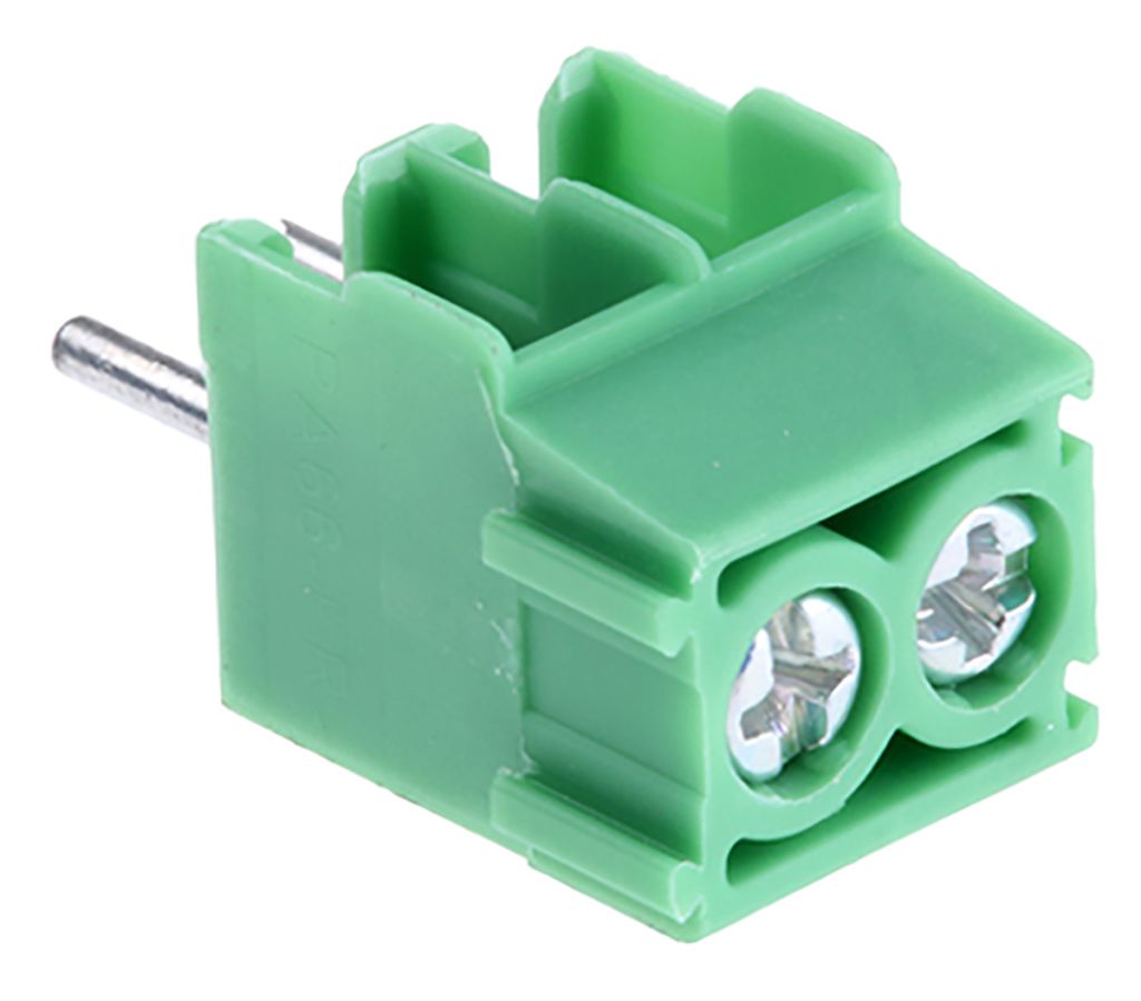 The through-hole terminal blocks are used to secure and terminate wires. Individual terminals use a screw to tighten the wire to make an electrical connection.