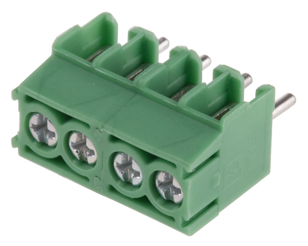 The through-hole terminal blocks are used to secure and terminate wires. Individual terminals use a screw to tighten the wire to make an electrical connection.