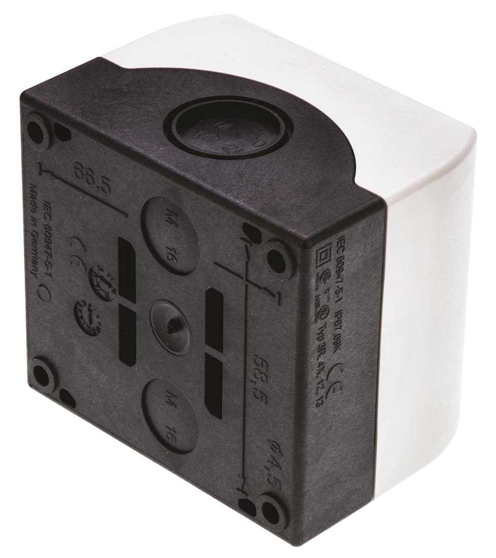 Forming part of Eaton's M22 range are several surface mount plastic enclosures created and designed to protect and enclose push buttons, control stations or similar technologies. Constructed of heavy-duty, insulated plastic and high-grade steel screws, these enclosures are ideal for use within a multitude of applications and environments.